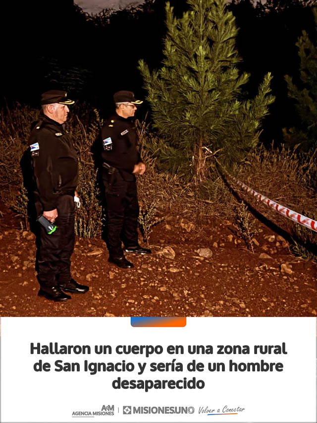 Un cuerpo sin vida fue encontrado este viernes por la tarde en una zona rural de Colonia Pastoreo, en jurisdicción de San Ignacio, y se presume que podría tratarse de Nicolás Alberto Muñoz, de 78 años, quien se encontraba desaparecido desde el pasado 9 de abril.