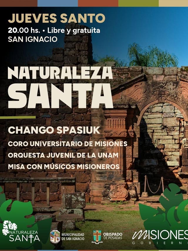 AGENCIA MISIONES.UNO | La localidad de San Ignacio será escenario de “Naturaleza Santa”, un encuentro que combinará fe, cultura y música en el marco de las celebraciones de Jueves Santo, con entrada libre y gratuita para toda la comunidad.